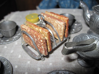 My 5 inch china doll has added the toast rack to her breakfast table.