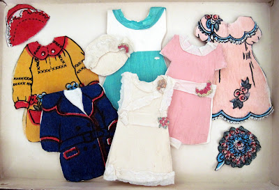 ...but I did, and was I ever glad! Inside...treasures! Three antique paper dolls, complete with outfits, hats, accessories, and even some original pattern pieces.
